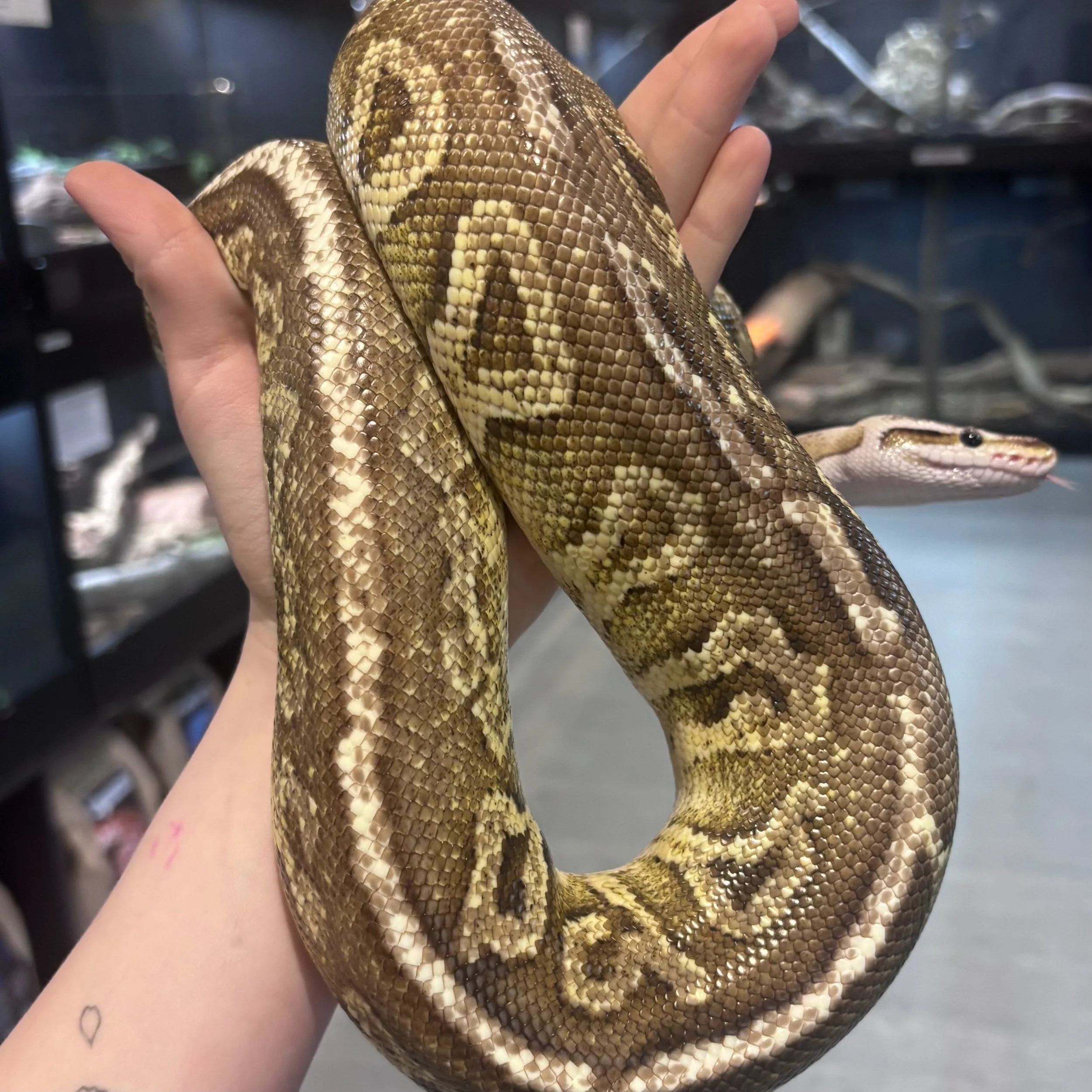 This female Royal Python is an absolute showstopper! A pewter fire pastel het clown (PH) Royal Python, making her a fantastic choice for collectors, breeders, or anyone looking to add a high-quality designer ball python to their collection.