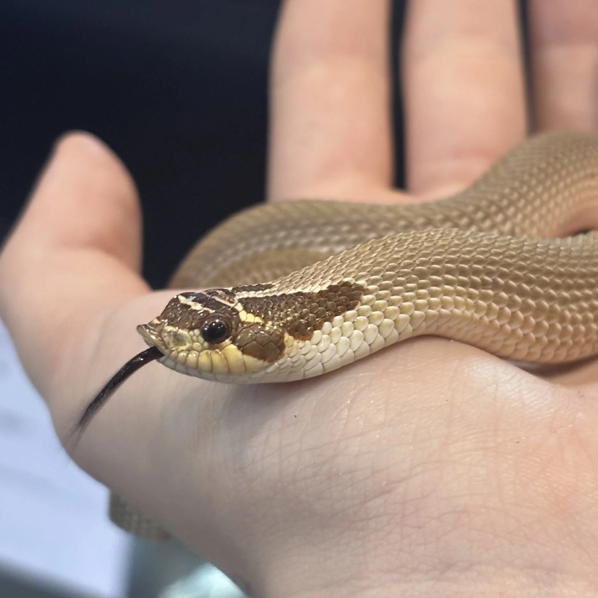 This lovely Western Hognose is healthy, alert, and feeding reliably. He is a CB early 2025 male Superconda het Snow and is currently thriving in a secure, appropriately sized enclosure with plenty of clutter and hides. He is feeding confidently on frozen/thawed prey and showing excellent growth and typical hognose curiosity.